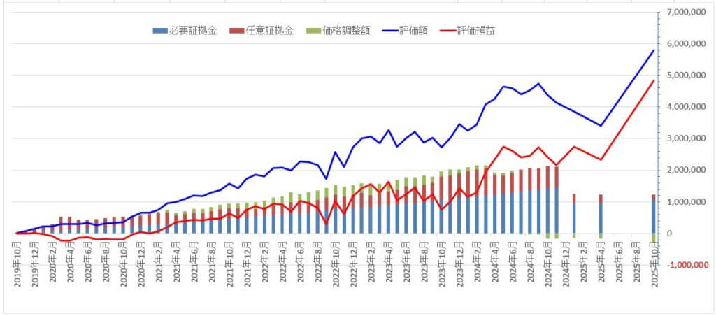 ①青棒グラフの必要証拠金+②赤棒グラフの