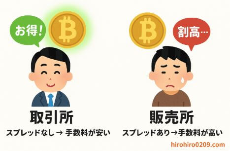 上で述べた通り、販売所取引では取引所のスプ