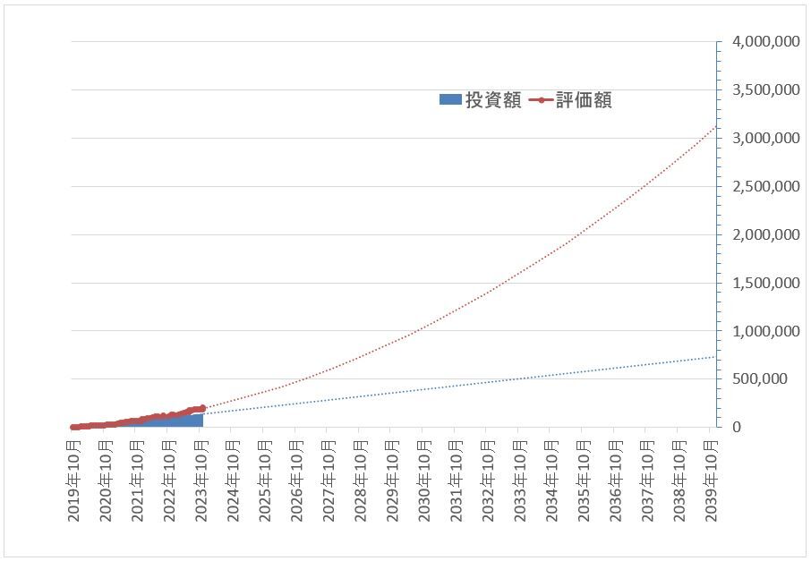 2023年10月頃までプロットしているのが実績です。